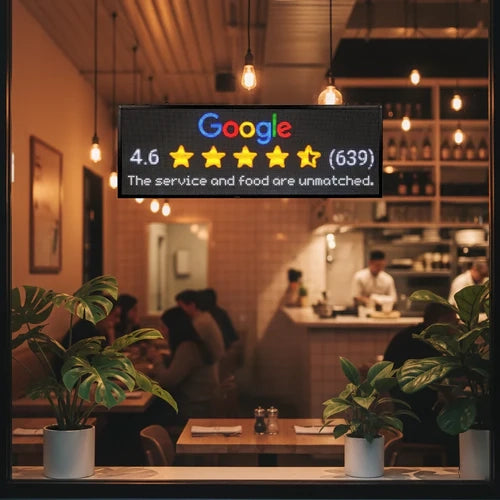 Instant credibility guaranteed. Signamic automatically broadcasts your 5-star rating to convert passersby, just as Gus Tacos confirms: "People see the Signamic sign and they walk in."