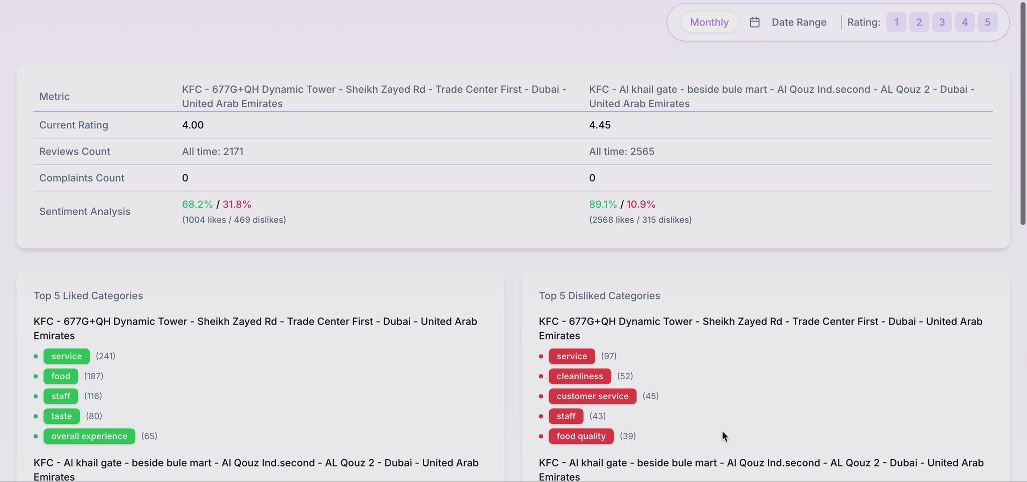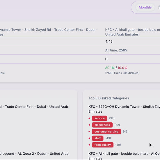 Visualize customer engagement over time. Monitor how shifts in your operations directly impact review volume and overall sentiment across weeks and months.